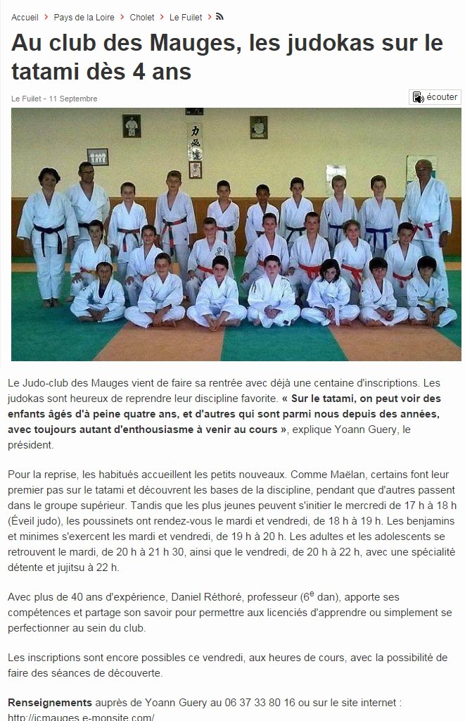 Judo Club des Mauges dans Ouest France